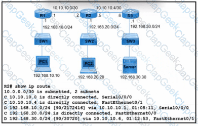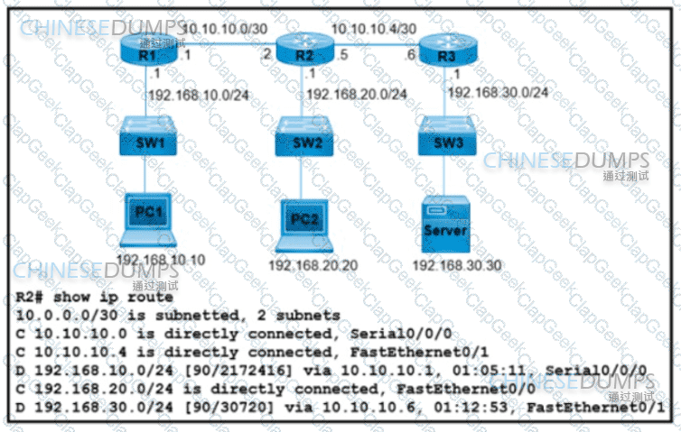 Refer to the exhibit. What is the next-hop P address for R2 so that PC2 reaches the application server via ElGRP?