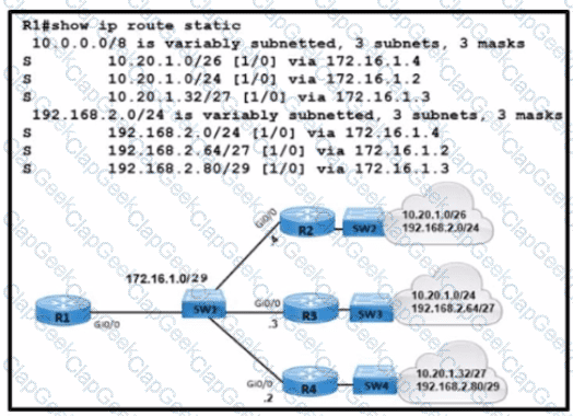 A static route must be configured on R14 to forward traffic for the 172 21 34 0/25 network that resides on R86 Which command must be used to fulfill the request?