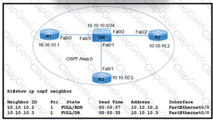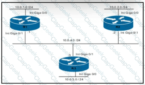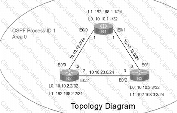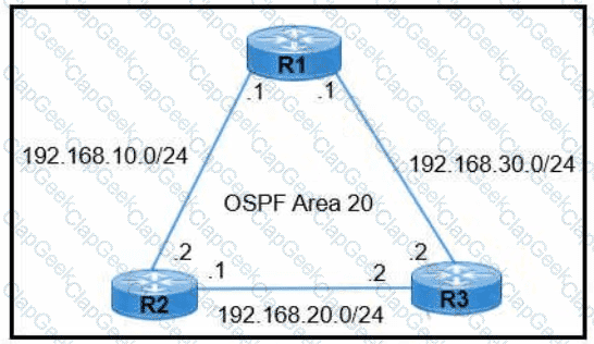 IP connectivity between the three routers is configured. OSPF adjacencies must be established.