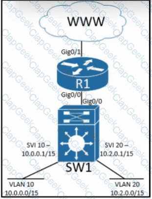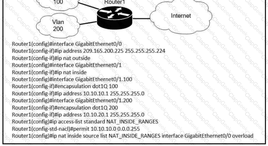 Users on existing VLAN 100 can reach sites on the Internet. Which action must the administrator take to establish connectivity to the Internet for users in VLAN 200?