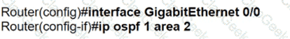 Which command configures OSPF on the point-to-point link between routers R1 and R2?