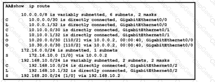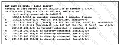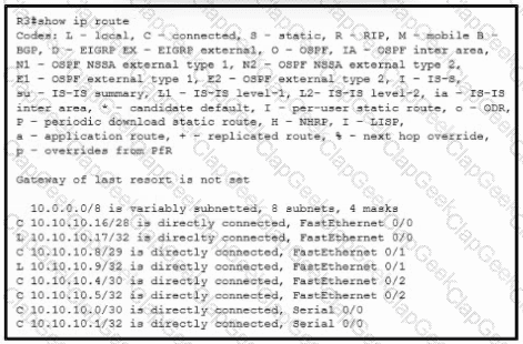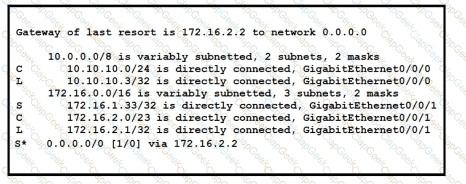 Refer to the exhibit. A packet sourced from 10.10.10.1 is destined for 172.16.3.254. What is the subnet mask of the destination route?