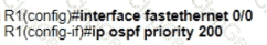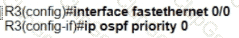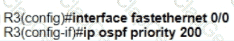 Routers R1 and R3 have the default configuration The router R2 priority is set to 99 Which commands on R3 configure it as the DR in the 10.0 4.0/24 network?