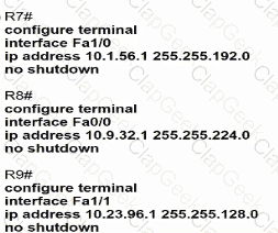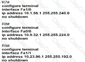 An IP subnet must be configured on each router that provides enough addresses for the number of assigned hosts and anticipates no more than 10% growth for now hosts. Which configuration script must be used?