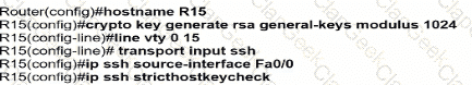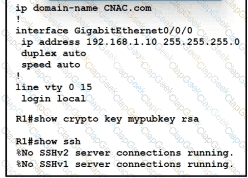 Which two commands must be added to update the configuration of router R1 so that it accepts only encrypted connections? (Choose two )