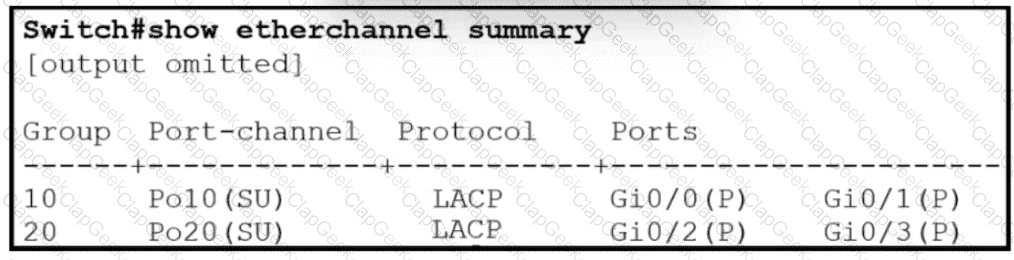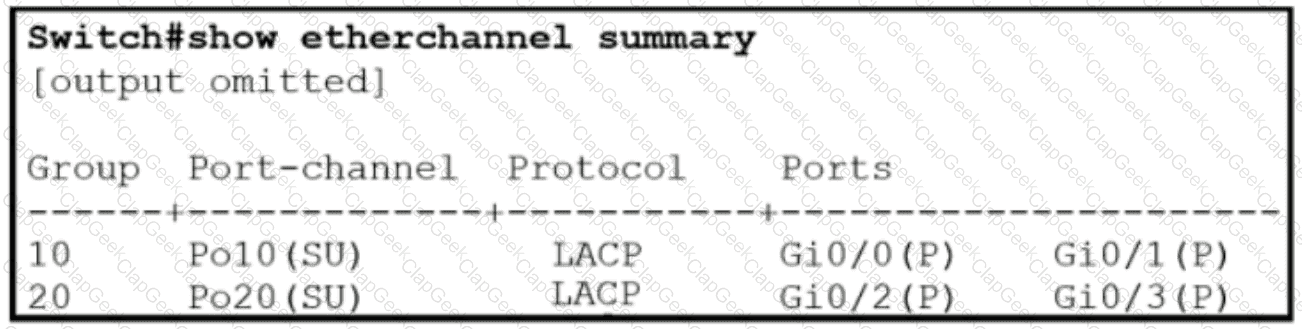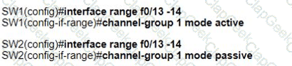 Refer to the exhibit. An LACP EtherChannel between two directly connected switches is in the configuration process.