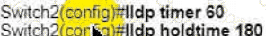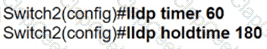 A network engineer must update the configuration on Switch2 so that it sends LLDP packets every minute and the information sent via LLDP is refreshed every 3 minutes Which configuration must the engineer apply?