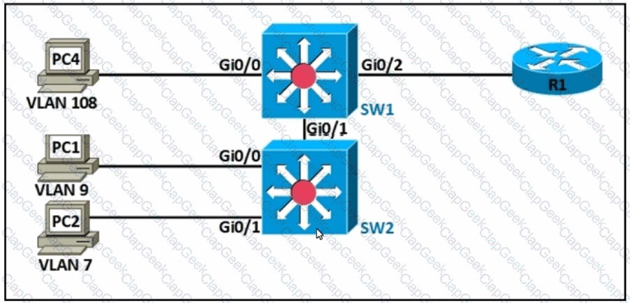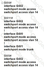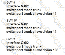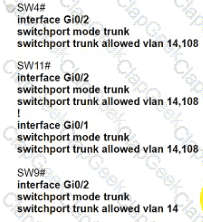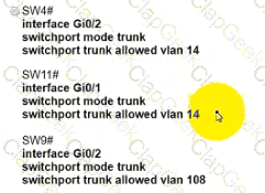 • The SW4 interface Gi0/1 and Gi0/0 on SW9 have been configured