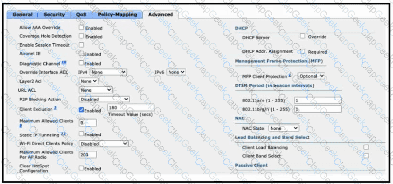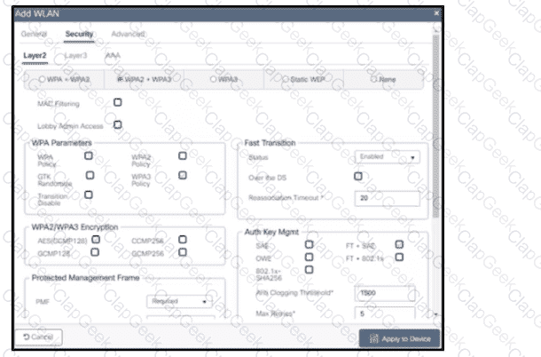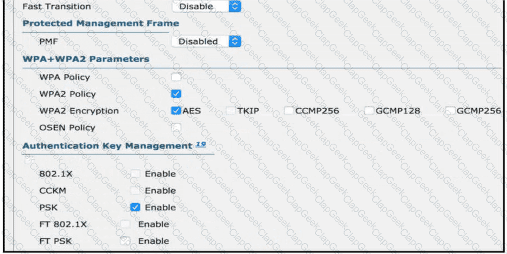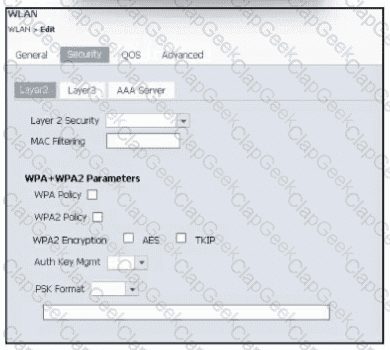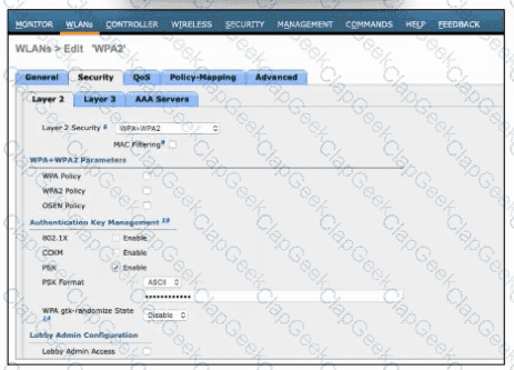 Refer to the exhibit. An administrator is configuring a new WLAN for a wireless network that has these requirements: