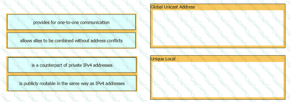 Drag and drop the characteristic from the left onto the IPv6 address type on the right.