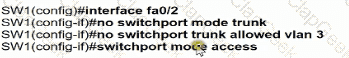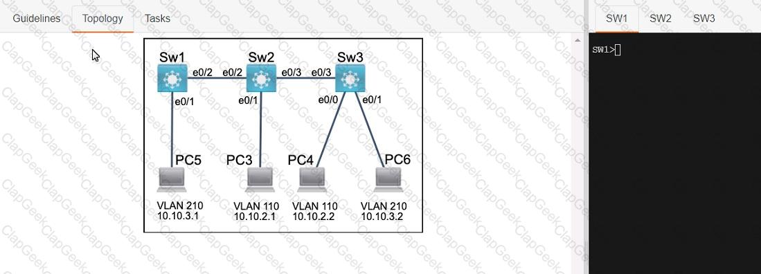 Three switches must be configured for Layer 2 connectivity. The company requires only the designated VLANs to be configured on their respective switches and permitted accross any links between switches for security purposes. Do not modify or delete VTP configurations.