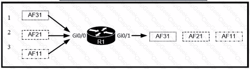 Which per-hop QoS behavior is R1 applying to incoming packets?