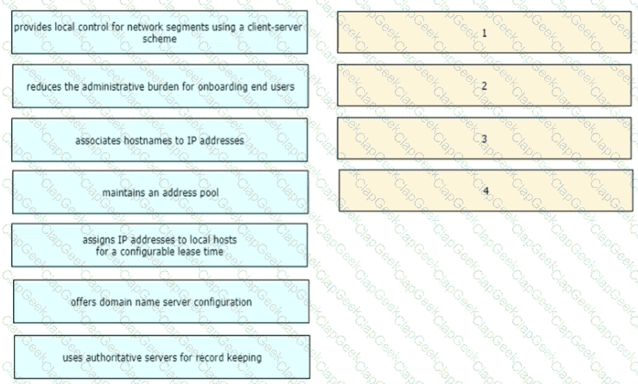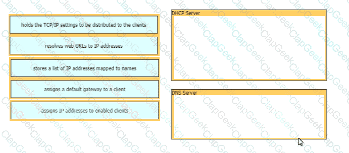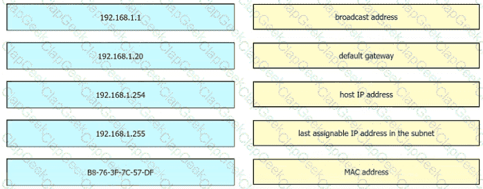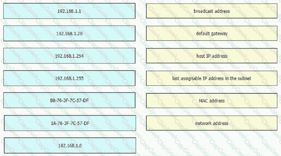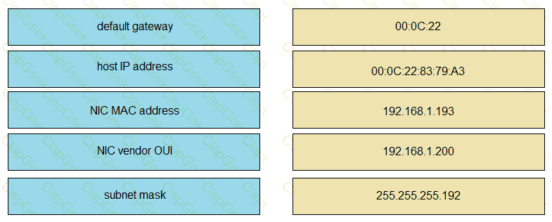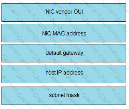 An engineer is tasked with verifying network configuration parameters on a client workstation to report back to the team lead. Drag and drop the node identifiers from the left onto the network parameters on the right.
