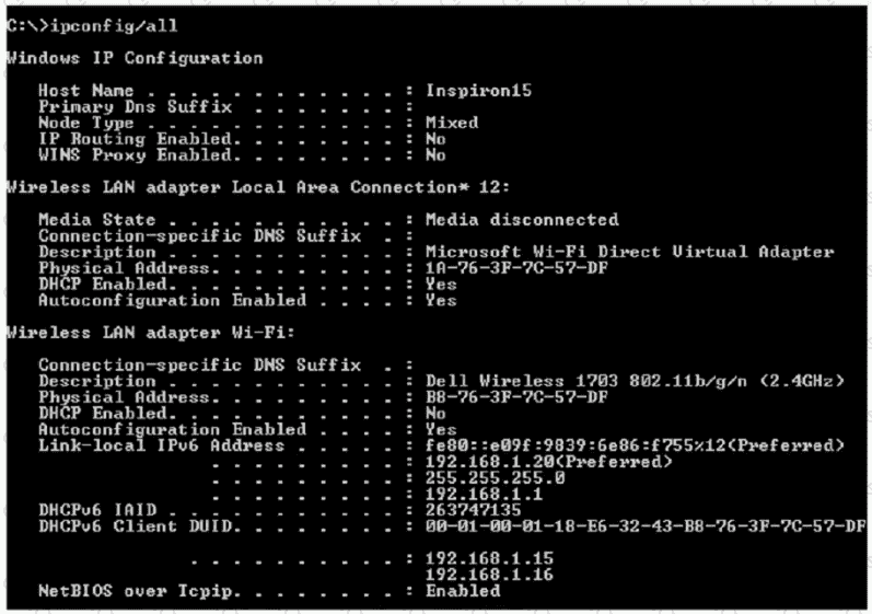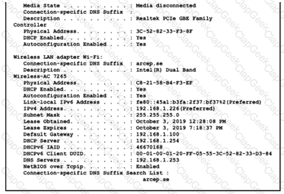 An on-site service desk technician must verify the IP address and DNS server information on a users Windows computer. Which command must the technician enter at the command prompt on the user ' s computer?