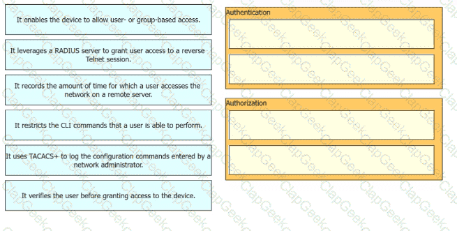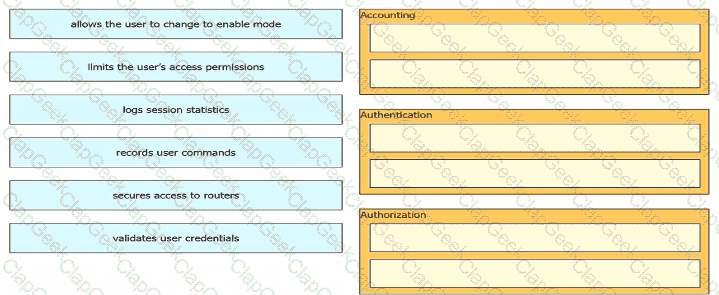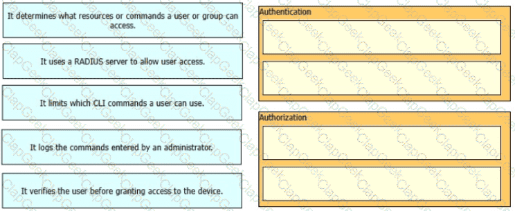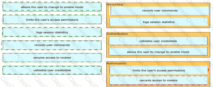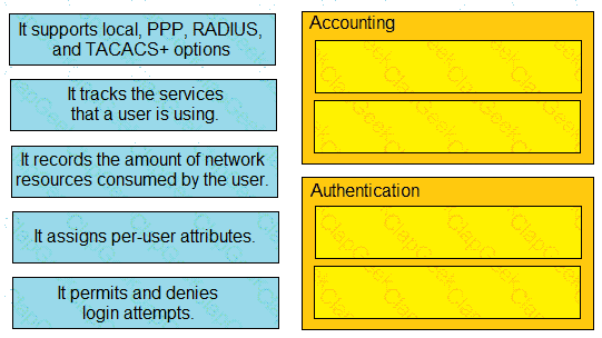 Drag and drop the AAA features from the left onto the corresponding AAA security services on the right Not all options are used.
