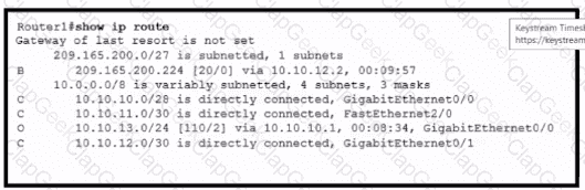 Packets received by the router from BGP enter via a serial interface at 209.165.201.10. Each route is present within the routing table. Which interface is used to forward traffic with a destination IP of 10.10.10.24?