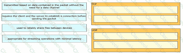 Drag and drop the TCP or UDP details from the left onto their corresponding protocols on the right.