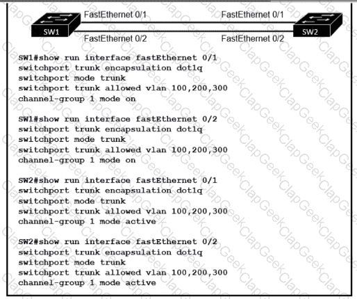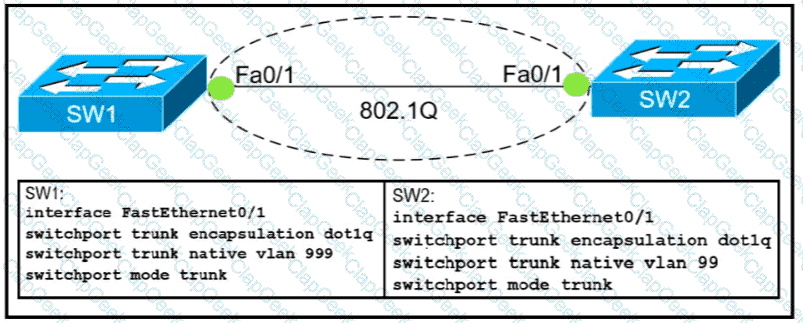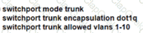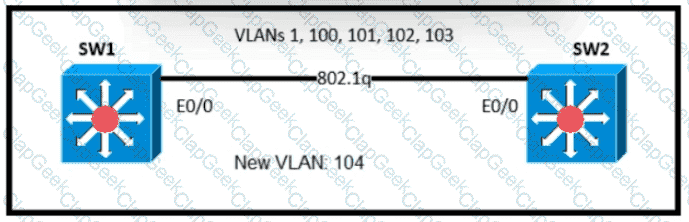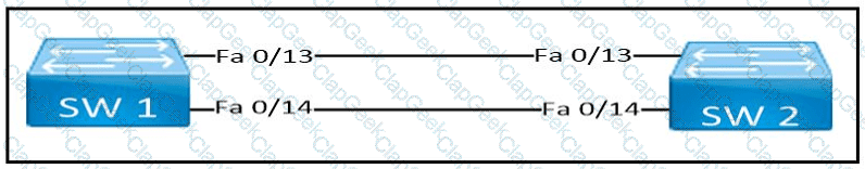 Two switches have been implemented and all interfaces are at the default configuration level. A trunk link must be implemented between two switches with these requirements: