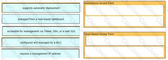 Drag and drop the facts about wireless architectures from the left onto the types of access point on the right. Not all options are used.