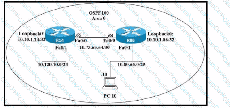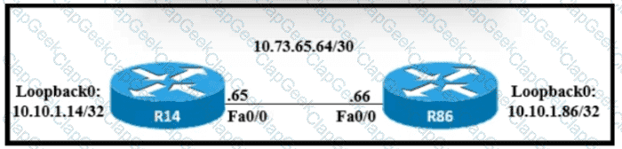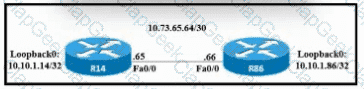 Refer to the exhibit. A static route must be configured on R14 to forward traffic for the 172.21.34.0/25 network that resides on R86. Which command must be used to fulfill the request?