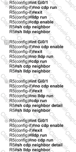 For security reasons, automatic neighbor discovery must be disabled on the R5 Gi0/1 interface. These tasks must be completed: