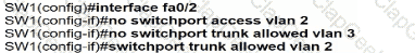 2. Configure the e0/2 interfaces on Sw1 and Sw2 as 802.1q trunks with only the required VLANs permitted.