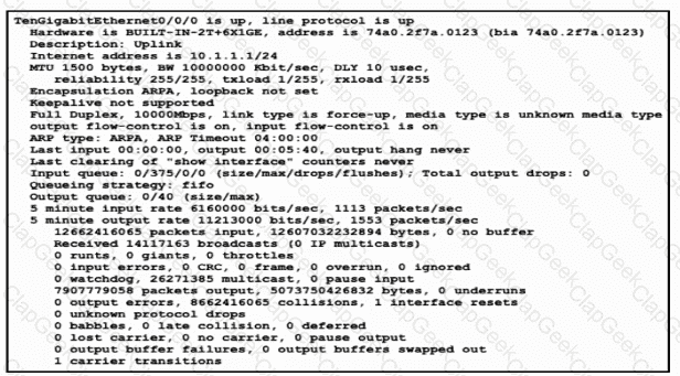Traffic that is flowing over interface TenGigabitEthernet0/0 experiences slow transfer speeds. What is the reason for the issue?