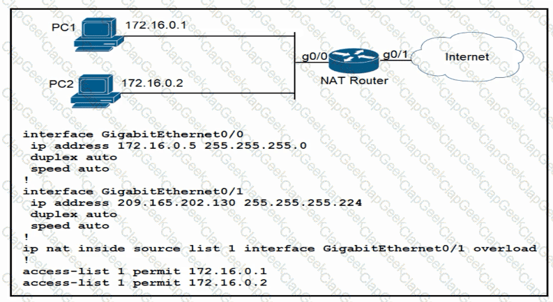 Which configuration must be applied to the router that configures PAT to translate all addresses in VLAN 200 while allowing devices on VLAN 100 to use their own IP addresses?