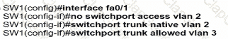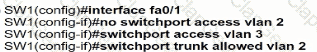 3. Configure the e0/3 interfaces on Sw2 and Sw3 as 802.1q trunks with only the required VLANs permitted.