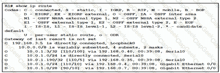 Traffic sourced from the loopback0 Interface is trying to connect via ssh to the host at 10.0.1.15. What Is the next hop to the destination address?