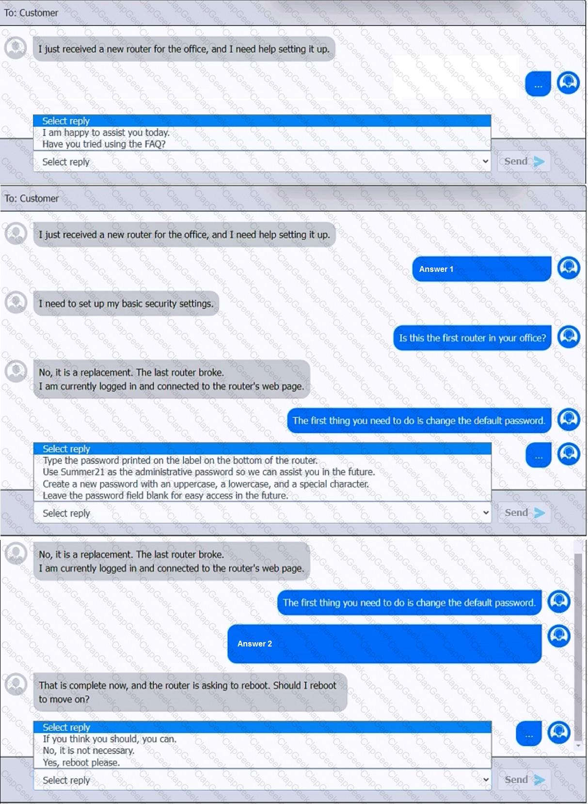 You have been contacted through the help desk chat application. A user is setting up a replacement SOHO router. Assist the user with setting up the router.