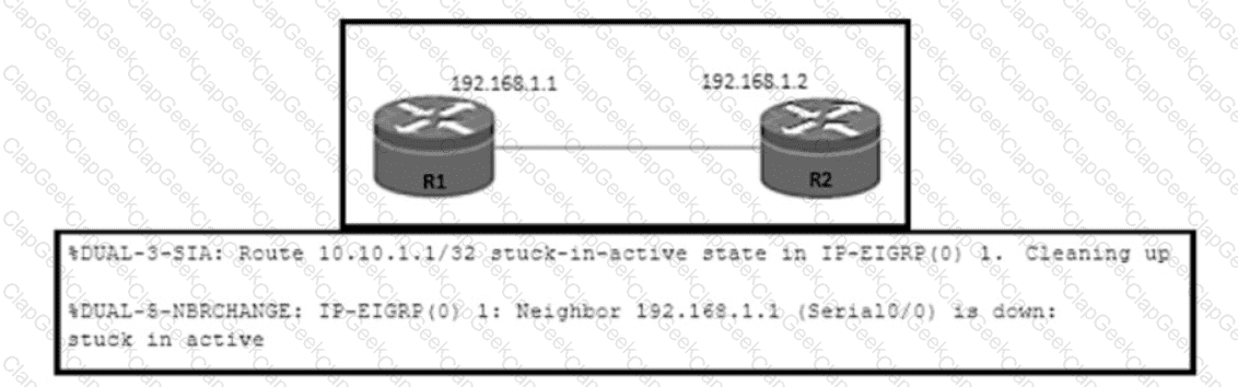 Refer to the exhibit. An engineer notices a connectivity problem between routers R1 and R2. The frequency of this problem is high during peak business hours. Which action resolves the issue?