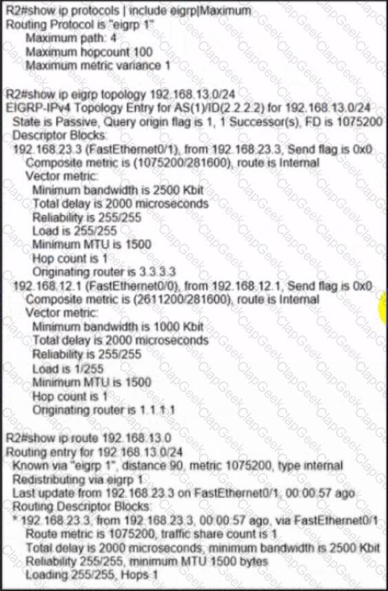 Refer to the exhibit. R2 has two paths to reach 192.168.13.0/24. but traffic is sent only through R3. Which action allows traffic to use both paths?