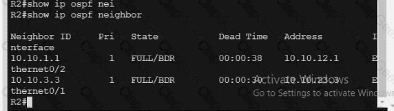 Refer to the exhibit. An administrator wanted to make R1 always elected as DR. R2 as BDR. and R3 as DROTHER but could not achieve the desired results. Which two configurations resolve the issue? (Choose two.)