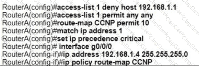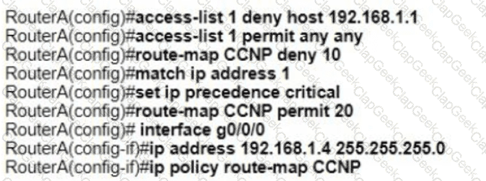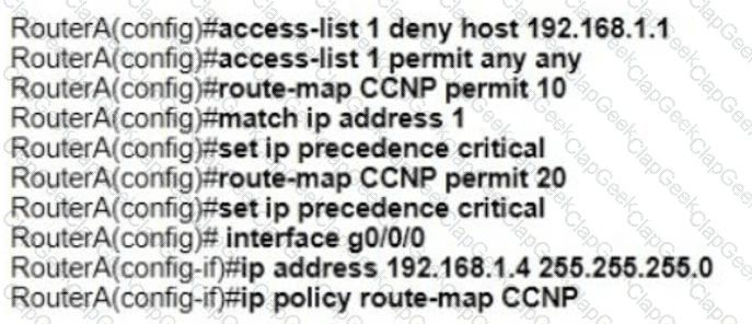 Refer to the exhibit. An engineer configures router A to mark all inside to outside traffic from network 192 168 1 0, except from host 192 168 1 1. with critical IP precedence. The policy did not work as expected Which configuration resolves the issue?