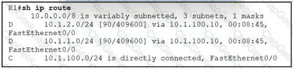 Refer to the exhibit. an engineer is trying to get 192.168.32.100 forwarded through 10.1.1.1, but it was forwarded through 10.1.1.2. What action forwards the packets through 10.1.1.1?