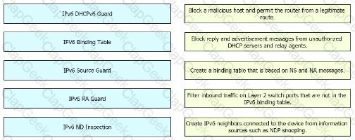 Drag and Drop the IPv6 First-Hop Security features from the left onto the definitions on the right.