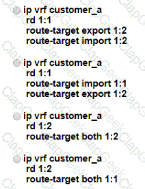 The network administrator configured VRF lite for customer A. The technician at the remote site misconfigured VRF on the router. Which configuration will resolve connectivity for both sites of customer_a?