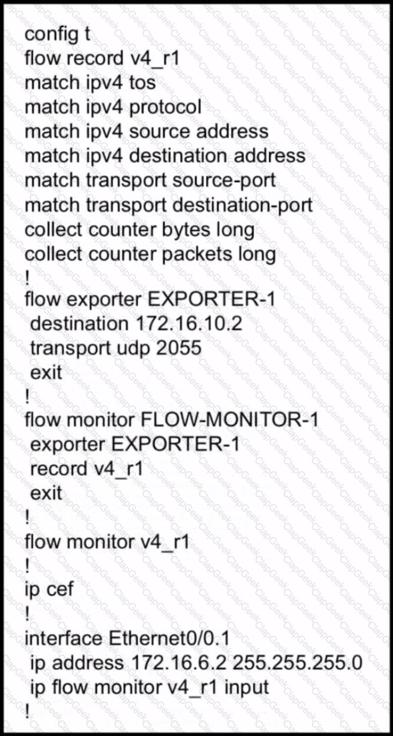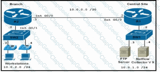 Refer to the exhibit. An engineer uses NetFlow to troubleshoot a voice quality issue from the branch office and notices that the traffic is not arriving in the correct format to the collector. Which configuration resolves the issue?