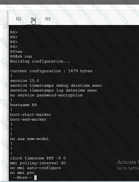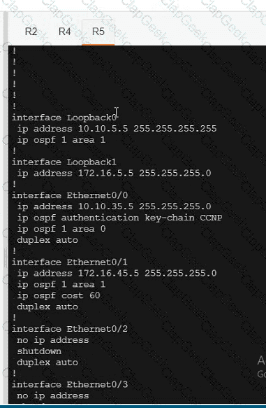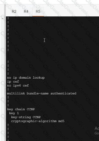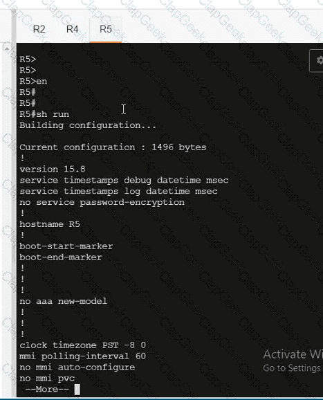 The output of the trace route from R5 shows a loop in the network. Which configuration