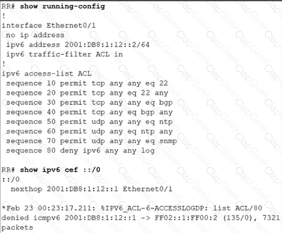 After a security audit, the administrator implemented an ACL in the route reflector. The RR became unreachable from any router in the network. Which two actions resolve the issue? (Choose two.)