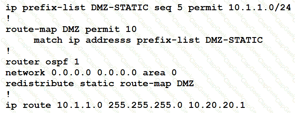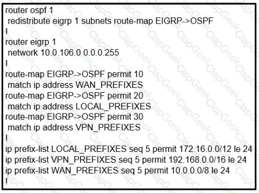 Which subnet is redistributed from EIGRP to OSPF routing protocols?