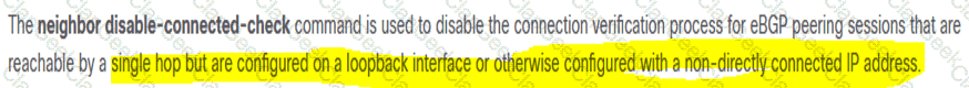 Refer to the exhibit. The BGP connection went from Established to Active when a new router was provisioned between CSR301 and its eBGP peers. Which command resolves the IPv4 peering problem?