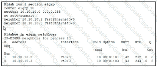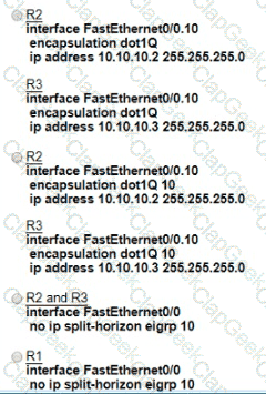R1 test its directly connected EIGRP peer 172.16.33.2 (SW1). Which configuration resolves the issue1?