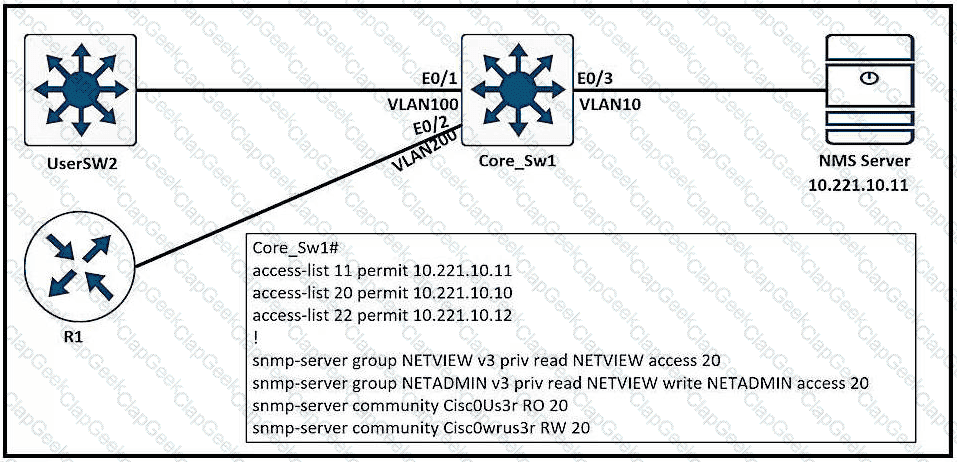 The network administrator is not getting the desired result for the SNMP traffic and SNMP traffic is getting dropped frequently. Which set of configurations resolves the issue?