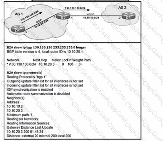 Refer to the exhibit. The 130.130.130.0/24 route shows in the R2 routing table but is getting filtering toward R3. Which action resolves the issue?