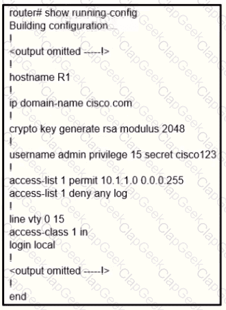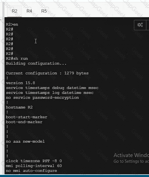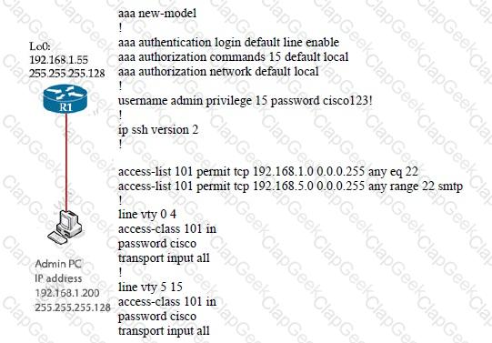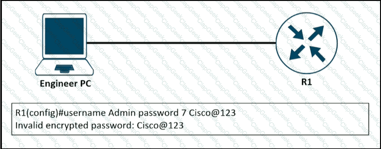 The administrator successfully logs into R1 but cannot access privileged mode commands. What should be configured to resolve the issue?