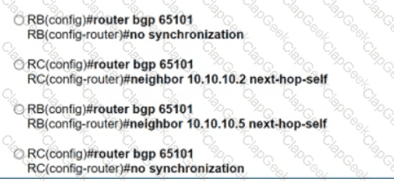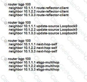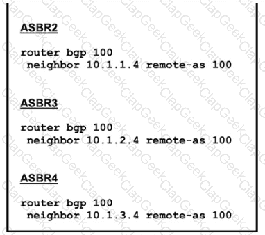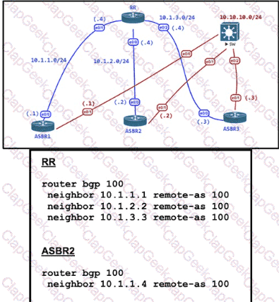 Refer to the exhibit The administrator configured the network devices for end-to-end reachability, but the ASBRs are not propagating routes to each other Which set of configurations resolves this issue?