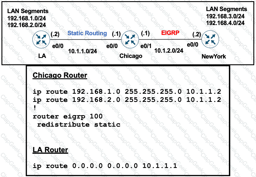 Refer to the exhibit. The Los Angeles and New York routers are receiving routes from Chicago but not from each other. Which configuration fixes the issue?