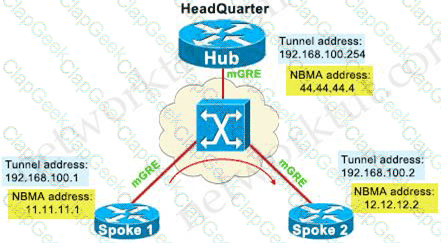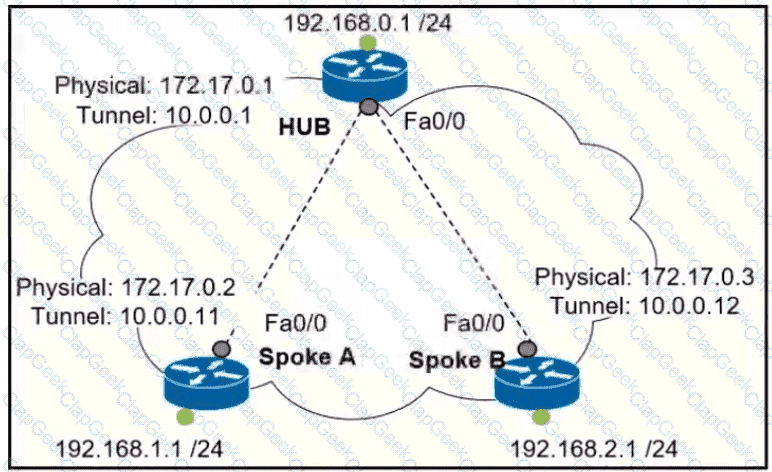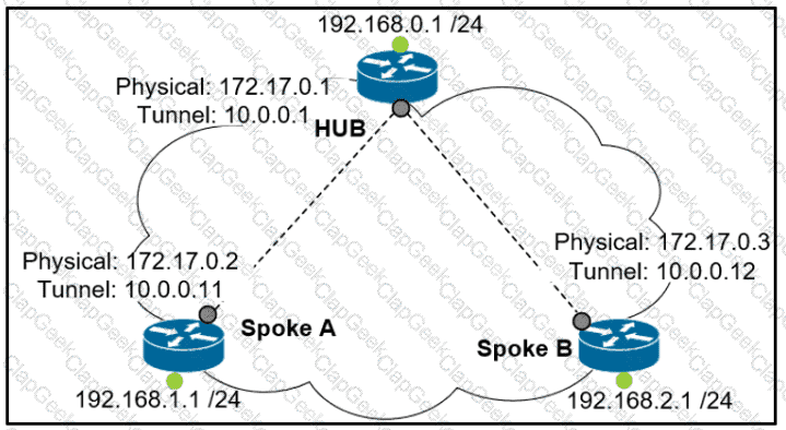 An engineer has configured DMVPN on a spoke router. What is the WAN IP address of another spoke router within the DMVPN network?